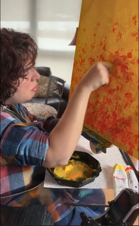 All my artwork is painted using my finger as a brush. Being an artist with cerebral palsy I have had to get creative when it comes to painting. Most of the time I use my finger and other times I use makeshift tools to create patters and textures
